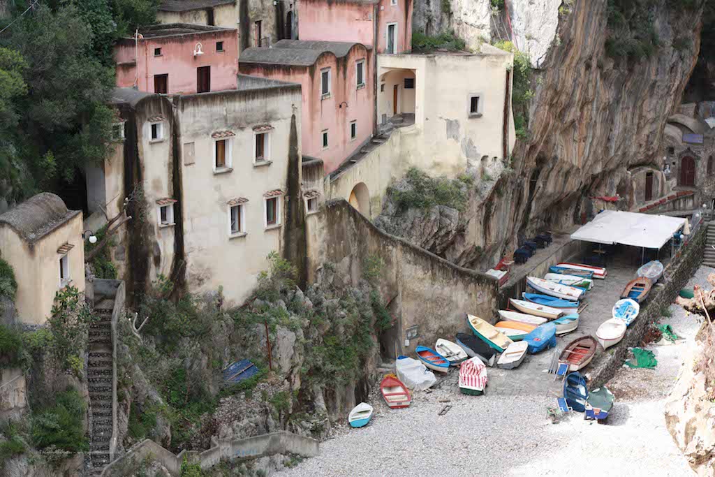 Ma voi lo sapevate che in Costiera Amalfitana c’è un fiordo? Io no, non lo sapevo. Percorrendo il meraviglioso tratto di strada tra Praiano e Amalfi per la prima volta (per me), abbiamo visto dal ponte che lo attraversa questo attraente gruppetto di case e barchette colorate, “buttate” o quasi in una piccola insenatura.