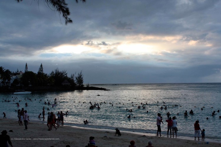 La spiaggia di Pereybère è bella ma piccola, il che non sarebbe necessariamente un aspetto negativo se non fosse che è frequentatissima dai locals. Anche questo, non sarebbe necessariamente un aspetto negativo perché consente una interessante attività di “people watching”…ma quando dico “frequentatissima” intendo davvero: frequentatissima. In generale abbiamo notato che l’attività prediletta dei mauriziani è il pic-nic in spiaggia. Dove pic-nic significa: stipare un furgoncino con quanti più parenti, amici e cibo possibile, scaricare tutto quanto sulla spiaggia e procedere con il cucinare arrosti speziati, gonfiare materassini, sparare musica a tutto volume, costruire tendopoli e bivacchi e mantenere il tutto fino a data e ora da definire. Ci siamo chiesti più volte: “ma i bambini non vanno a scuola? E gli adulti non lavorano…ma proprio nessuno??”. La prima risposta ovvia che ci siamo dati è stata che anche per loro era un periodo di vacanza. Ogni giorno ci aspettavamo fosse l’ultimo giorno di vacanza e di vedere gli abitanti riprendere il tran-tran della vita quotidiana. Non è successo, le tendopoli in spiaggia sono rimaste lì, i bambini anche, i parenti pure, l’arrosto al curry che ve lo dico a fare.