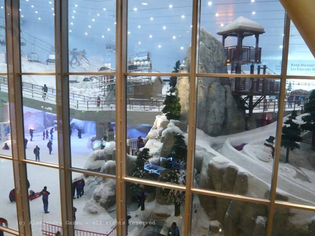 Non so davvero che dirvi su questo. Da un lato c’è il tema ecologico degli enormi costi energetici che comporta mantenere la neve all’interno di un centro commerciale nel pieno del deserto. Dall’altro c’è l’effetto disorientante di finto-plasticoso per chi la neve ha avuto la fortuna di vederla sulle montagne. In ultimo, c’è da riconoscere che la cosa, proprio per la sua assurdità, può anche avere un suo senso come attrazione da visitare.