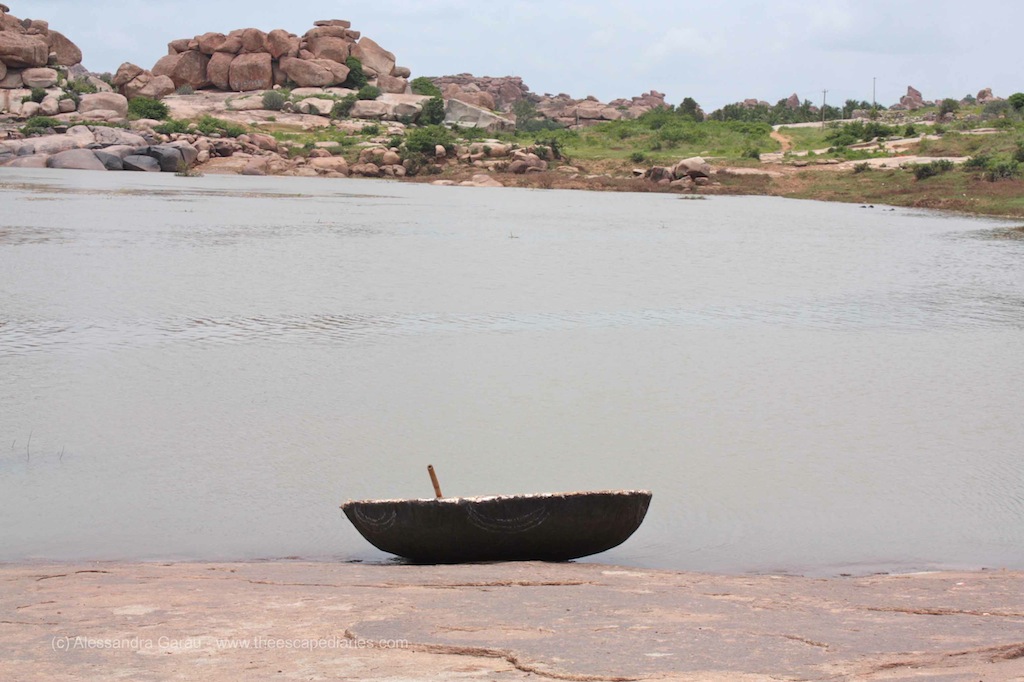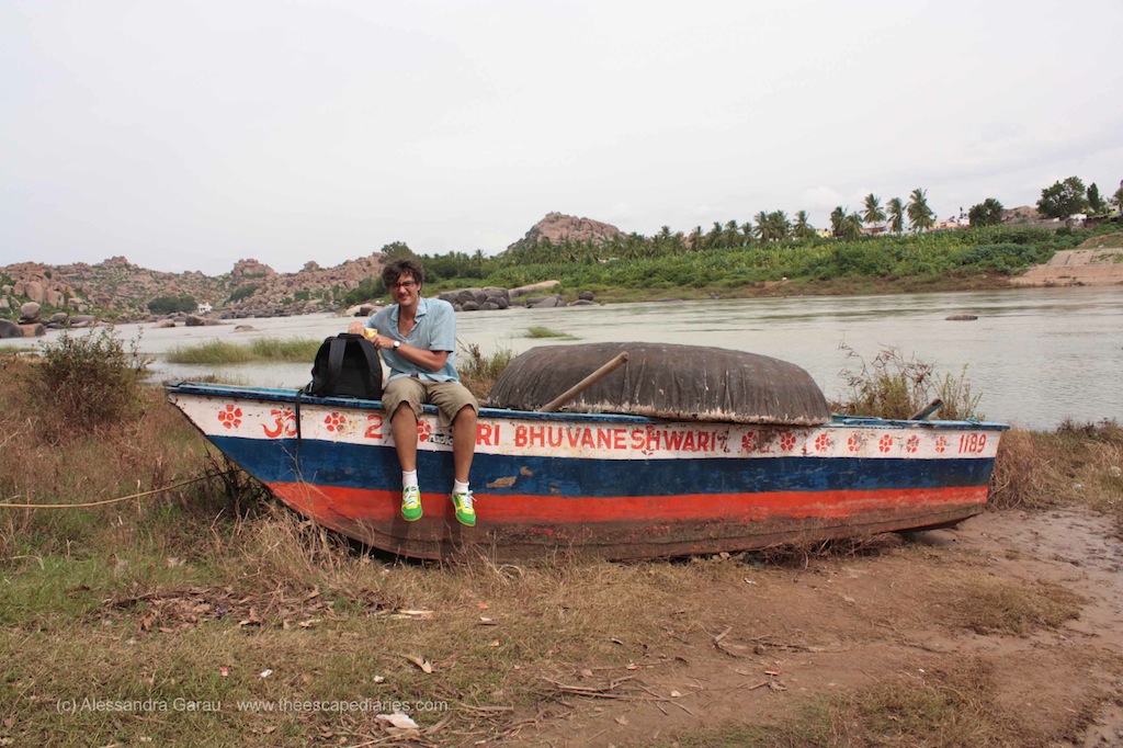 Il giorno dopo attraversiamo il fiume in barca e ce ne andiamo sull’altra sponda del Tungabhadra a visitare un’altra serie di templi ancora in uso, tra risaie e banani e palmizi.
