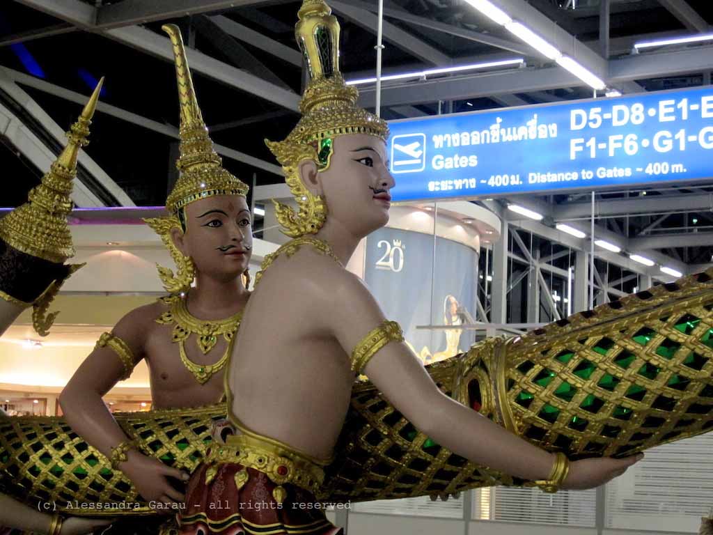 E per concludere…statue kitsch all’aeroporto ci salutano. Bye bye Bangkok.