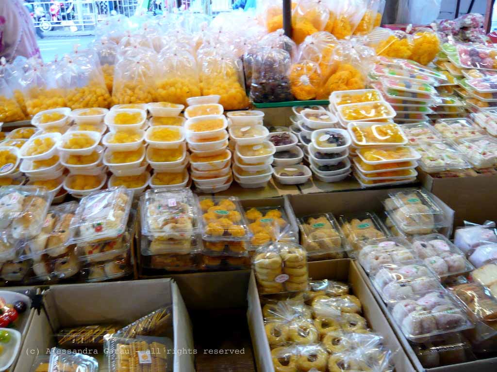 I mercati, con tutti quei cibi sotto la pellicola trasparente e le bevande dentro i sacchetti di plastica. Queste foto che seguono sono state scattate al mercato della zona di Little India, una delle esperienze più belle dei miei giorni a Bangkok.