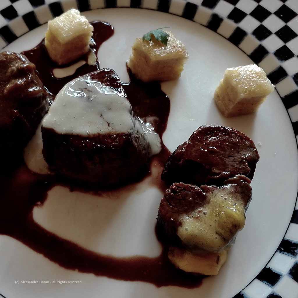 I dettagli degli interni mantengono una loro coerenza con il palazzo, alle pareti foto d’epoca e foto dei celebri visitatori del ristorante. Il servizio è impeccabile.