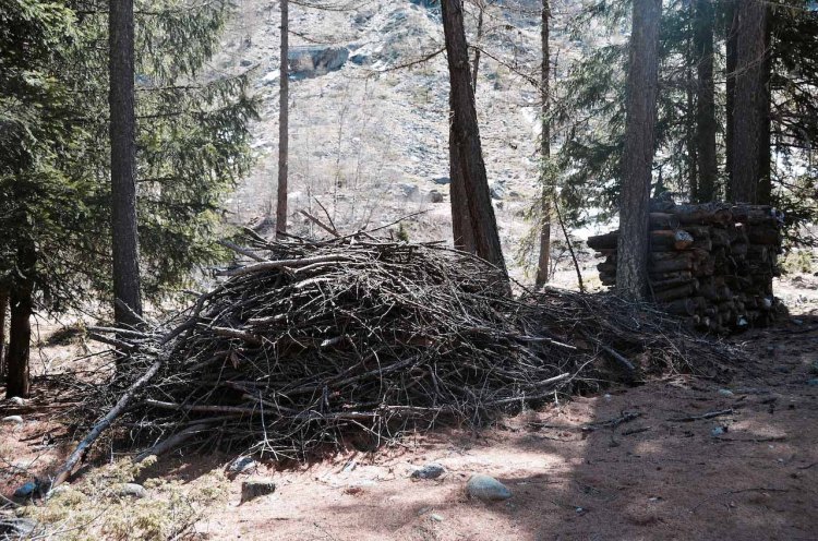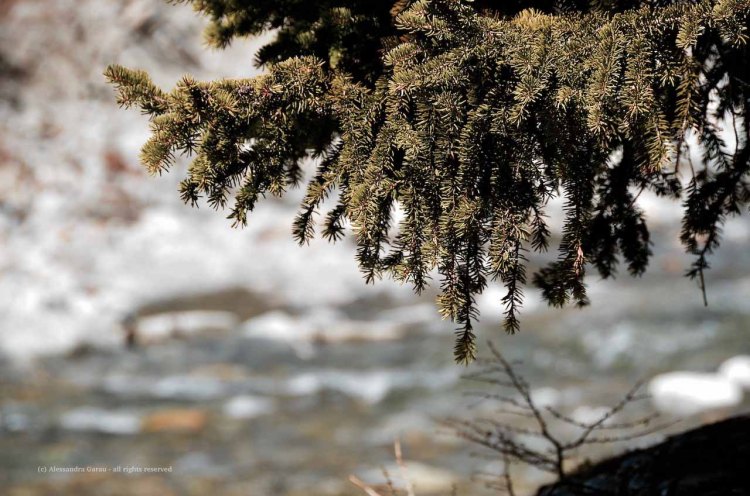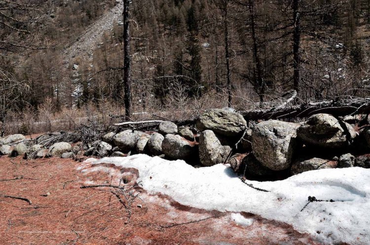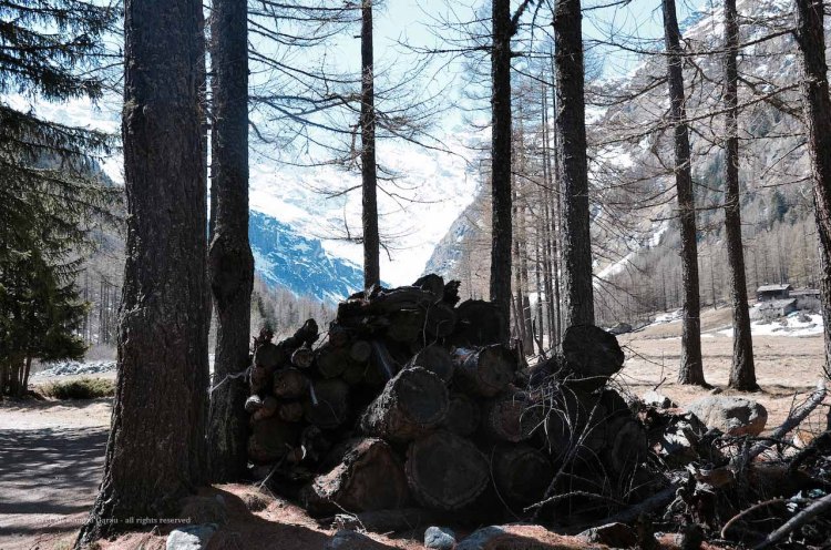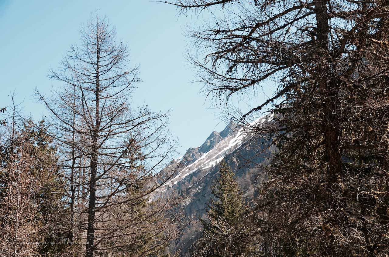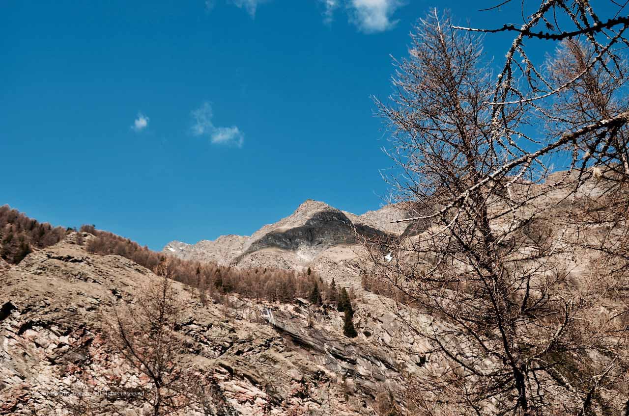 Sono affascinata dai colori del disgelo, l’erba è ancora secca e marrone, umida di neve, i rami degli alberi stanno cominciando a rigermogliare, alcuni sono ancora rinsecchiti e coperti da una barbetta di muschio. La primavera al Gran Paradiso si fa attendere un po’ di più. Penso a quanto sarà bello qui con i prati tutti verdi e le mucche al pascolo, sto già pensando a quando torneremo, magari in estate.