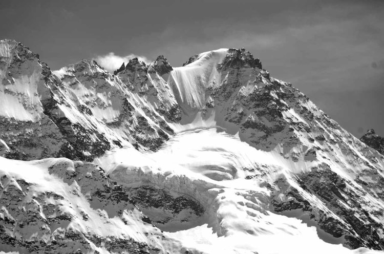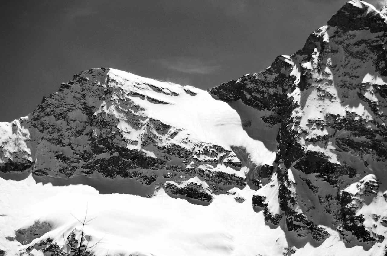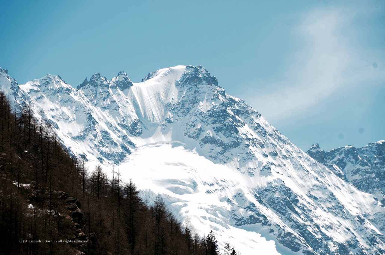 Ed eccoci qua, troviamo il nostro posto. Il cielo è azzurro anche se la temperatura è bassa ed inizia ad alzarsi un po’ di vento gelido. Giusto per ricordarci che siamo al cospetto di un signor 4000 e passa metri.