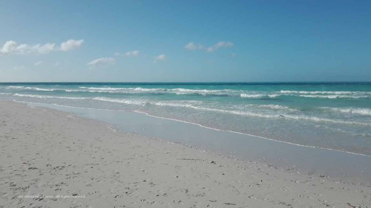 Ammetto che al nostro arrivo siamo rimasti un po’ perplessi dalla fila di resort uno appresso all’altro: ma qui a Cuba le cose stanno così. Per dovere di cronaca devo anche ammettere che due notti in un letto king size comodo e una doccia enorme e calda era qualcosa di cui avevamo tutti bisogno. E anche del mare, avevamo bisogno anche di quello, anche se, pur essendoci il sole, c’era anche un forte vento: come vedete dalle foto, il mare non era esattamente piatto.
