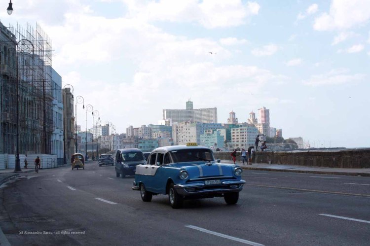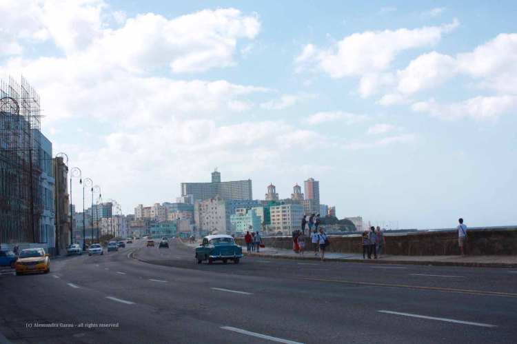 Il tavolo per noi non c’è subito e ci dicono di tornare dopo un’ora. Stregati da questo posto incredibile accettiamo e dato che Orlando dorme nel passeggino, ne approfittiamo per proseguire fino al Malecón che nel nostro primo giorno a L’Avana non avevamo visitato a causa del temporale che ci aveva costretto a modificare all’improvviso i nostri piani.