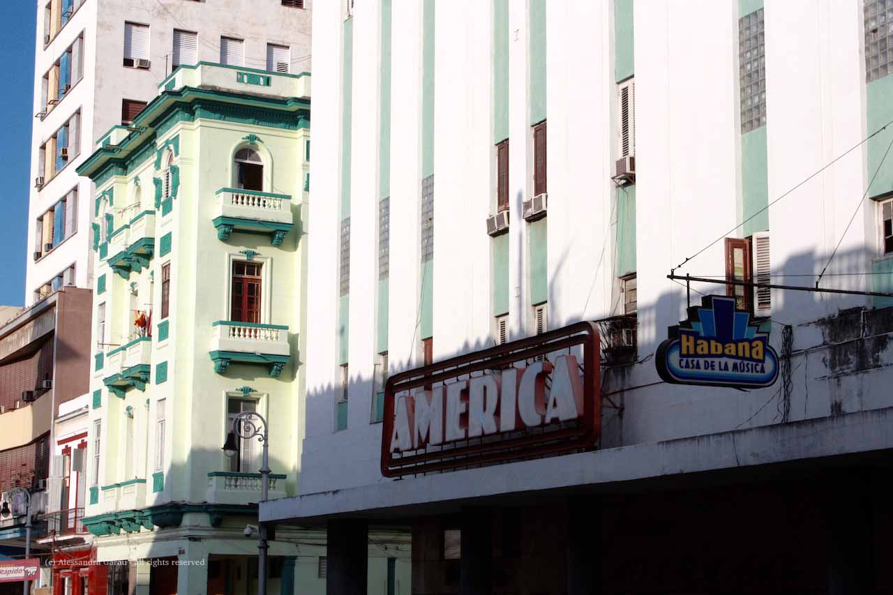 Dopo l’ottimo pranzo a La Guarida procediamo su Concordia fino all’incrocio con Galiano e vediamo da fuori il Teatro América, uno dei palazzi più interessanti della città costruito negli anni ’40.