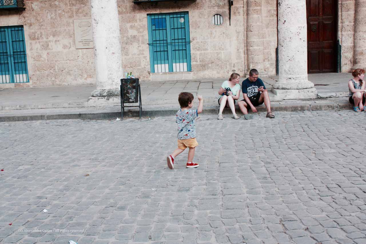 Visto che abbiamo ancora tempo, diamo un ultimo sguardo al bellissimo Palacio Bacardi, questa volta con il sole, proseguiamo su Empedrado, e torniamo a vedere ancora una volta Plaza de la Catedral, che Orlando ha ormai eletto a suo playground preferito.
