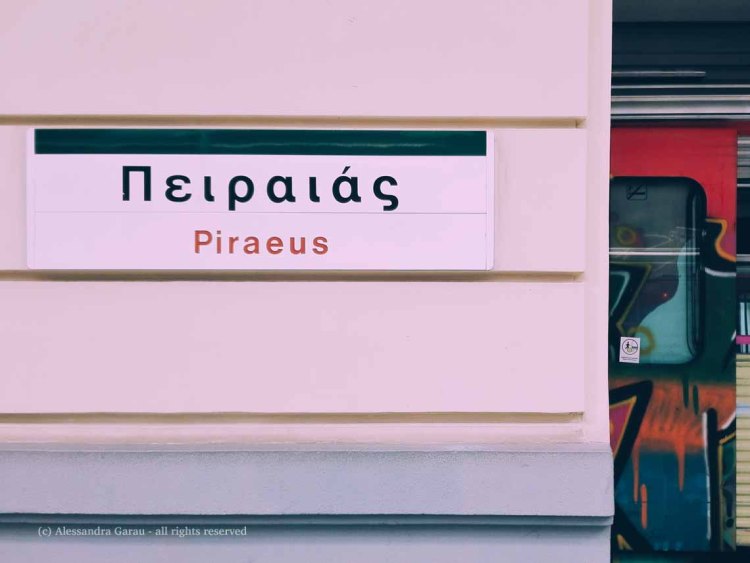Mi dispiace non fermarmi nemmeno un giorno ad Atene. Ma d’altra parte questo viaggio è stato pensato e voluto per goderci vacanze marine, al 100%. Atene ad agosto può essere calda come un forno e anche se la visita all’Acropoli mi attira da morire, decidiamo di rimandarla ad un’altra stagione. Abbiamo tempo prima del traghetto che ci porterà a Sifnos, e così decidiamo di raggiungere il Pireo con mezzi pubblici: dall’aeroporto internazionale Eleftherios Venizelos (adoro i nomi degli aeroporti!) prendiamo il treno urbano che, con cambio alla fermata di Monastiraki, ci porta fino al Pireo. Il viaggio dura una cinquantina di minuti, in alternativa al treno c’è l’autobus diretto che porta dall’aeroporto al Pireo, ma ci mette un po’ di più e finisce inghiottito dal traffico cittadino, anche per questo scegliamo il treno. E anche perché il treno permette al bambino di muoversi un po’ di più e dopo l’aereo lui ne ha bisogno. Atene scorre fuori dal finestrino del treno, vedo case bianche e color crema e giardini, in alcuni momenti mi ricorda Amman. Poi il treno si butta sottoterra. Sul treno incontriamo e chiacchieriamo con una signora ateniese che fa la professoressa di greco a Napoli, alla fermata di Monastiraki si assicura di metterci sul treno giusto per il Pireo.
