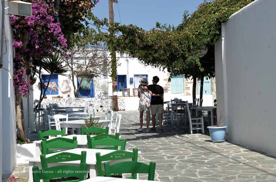 Il primo giorno partiamo come al solito senza troppi piani definiti, prendiamo il primo autobus che passa e che va a Faros e senza saperlo ancora, questo diventerà il nostro posto preferito di Sifnos, ci torneremo infatti ancora una volta l’ultimo giorno prima di lasciare l’isola. Superata l’affollata spiaggetta proprio sul porticciolo di Faros, piena di taverne, con una breve passeggiata attraverso le casette del villaggio si arriva alla più tranquilla spiaggia di Blychò. Basta scegliere l’ombra dell’albero che si preferisce e condividerla rispettosamente con gli altri bagnanti. Da qui parte anche il sentiero per il bellissimo monastero di Chrissopingi. Nei giorni successivi giriamo tutte le principali spiagge e località dell’isola, ma Faros rimane la nostra preferita. Sifnos è un’isola con un turismo discreto, molto del quale è fatto di ateniesi, qualcuno lo definisce chic. Le spiagge di Kamares, Vathi e Platis Gialos sono tempestate di tavernai ma quello che mi colpisce è un modo diverso di vivere la spiaggia rispetto all’Italia, più semplice se vogliamo, per quanto non esattamente “selvaggio”, non a Sifnos.