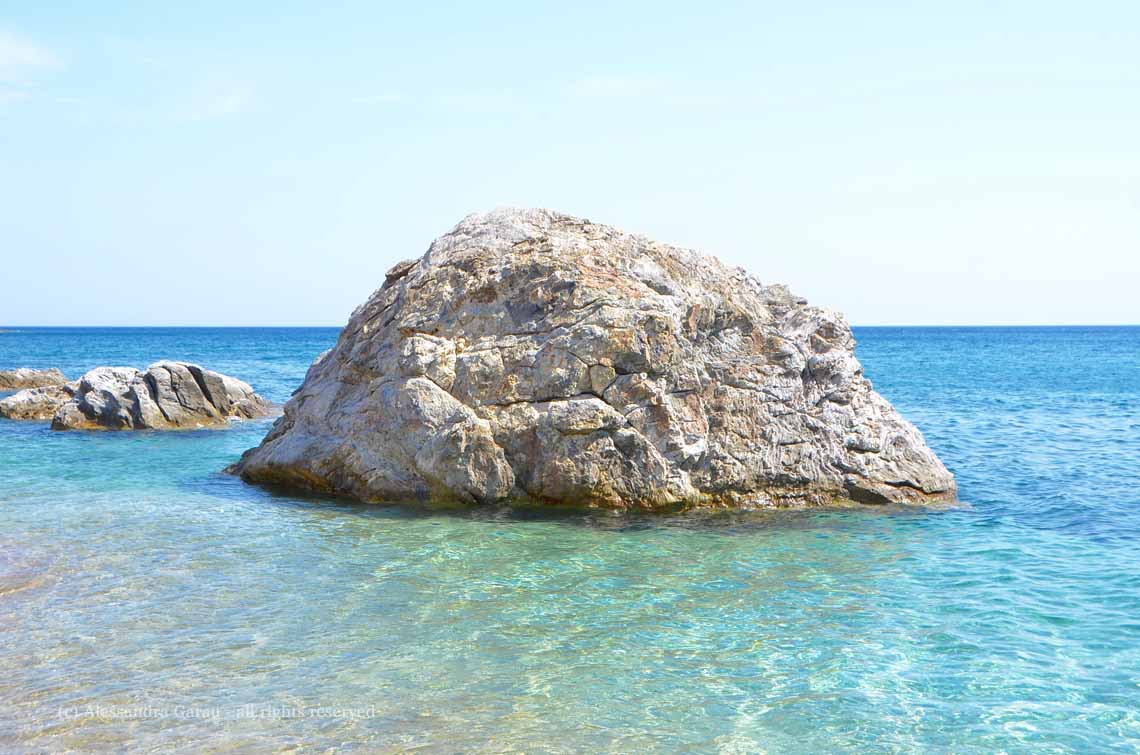Vicino a Firiplaka si trova anche la piccola insenatura di Tsigrado. Per scendere alla piccola spiaggia è necessario un po’ di spirito avventuroso, bisogna calarsi da una scaletta di legno lungo la scogliera e aiutarsi con una corda. Noi con il bambino non ce la siamo sentita, e ci siamo limitati a sbirciare la spiaggia dall’alto.