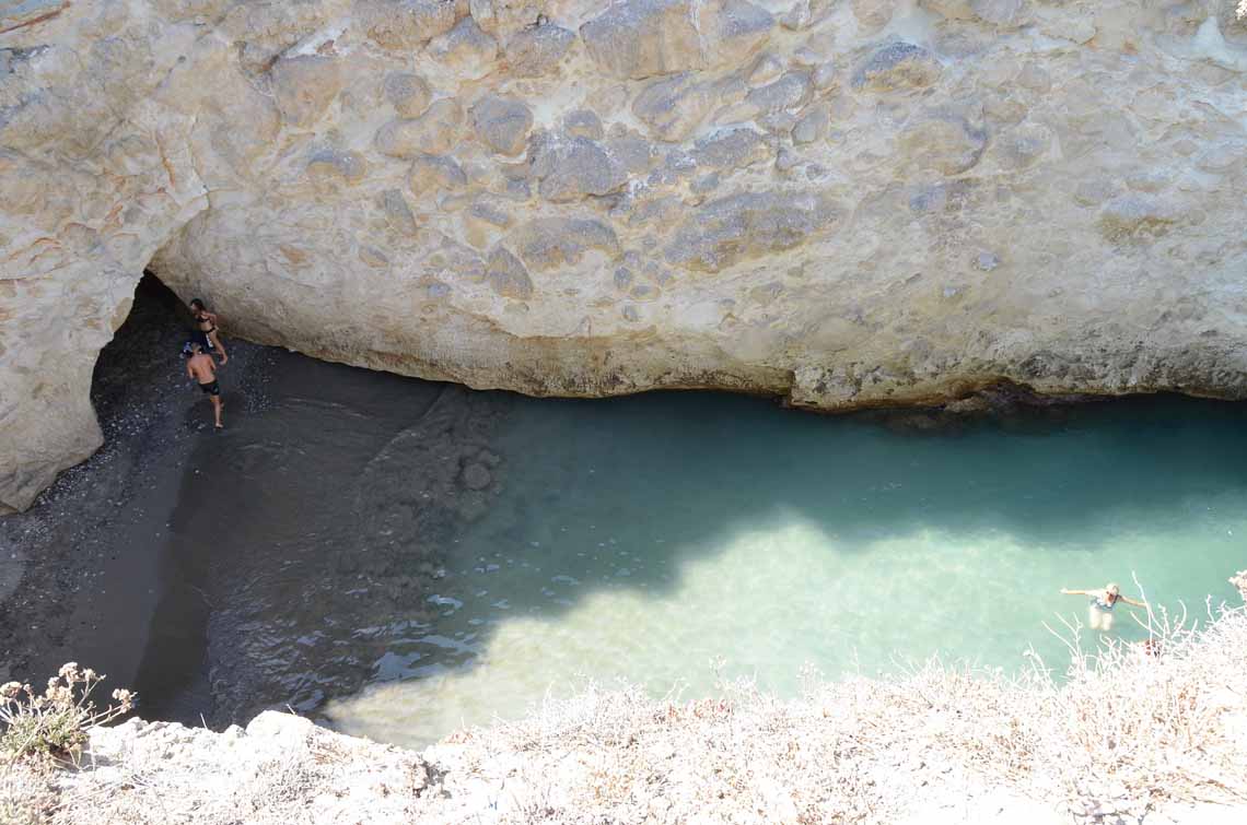 Kleftiko: probabilmente una delle località, insieme alle scogliere bianche di Sarakiniko, più iconiche dell’isola. Kleftiko è raggiungibile solo in barca: ad Adamàs ci sono molte compagnie che organizzano il tour dell’isola. Ci siamo informati ma a noi è stato sconsigliato da una delle compagnie per l’età di Orlando (poco meno di 3 anni durante questo viaggio). Per raggiungere infatti questa località è necessario passare un punto in cui il meltemi soffia molto forte e il mare agitato. In alternativa è possibile fare un tour in barca con partenza da Provatas.