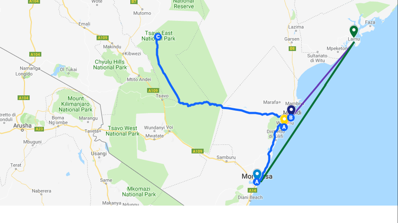 - Da Mombasa a Timboni (Watamu area): con il nostro hotel abbiamo organizzato il pick-up dall’aeroporto di Mombasa. Tutto è andato liscissimo: il driver ci attendeva all’uscita, in un attimo eravamo in macchina verso Timboni.
