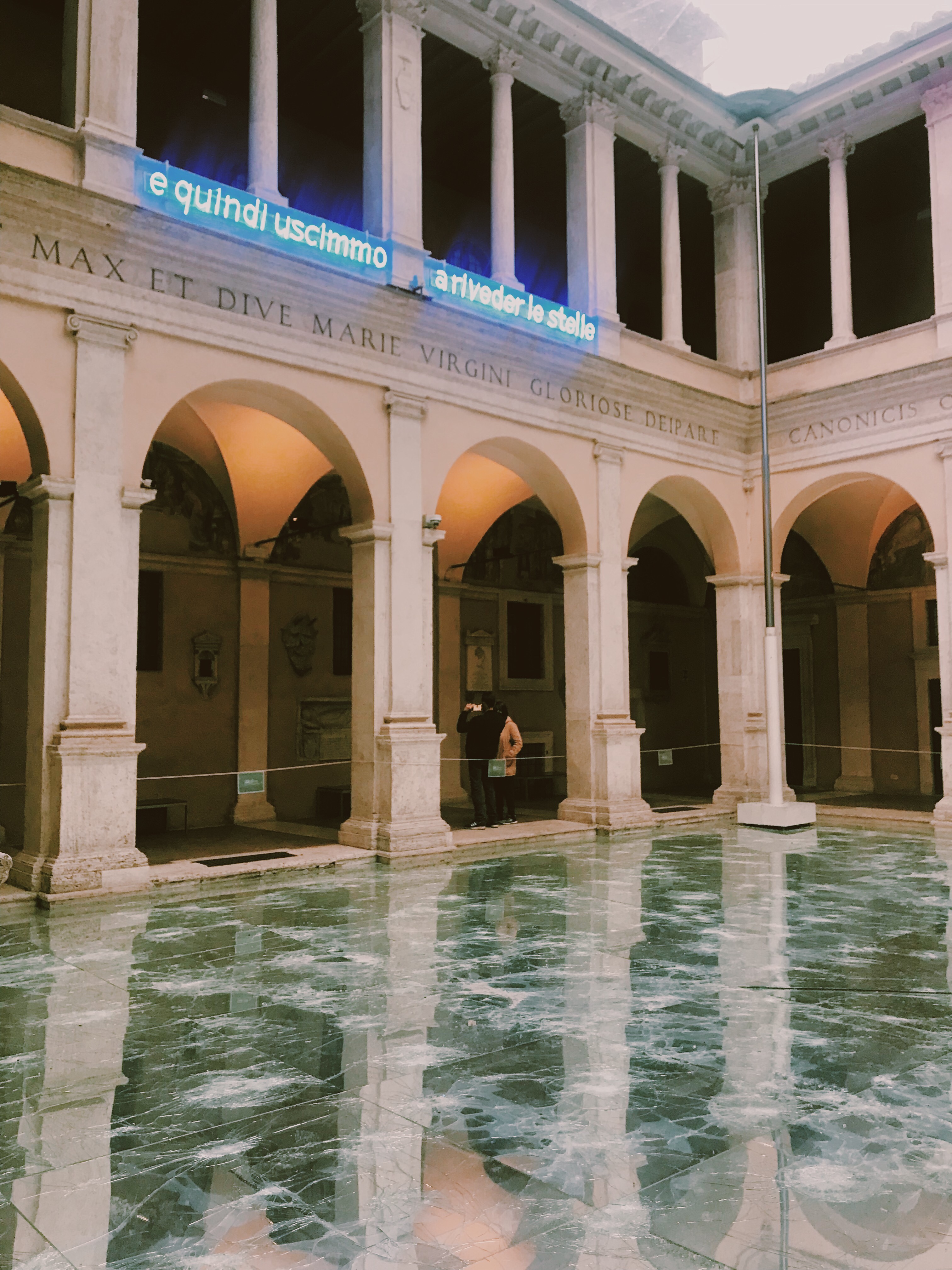 - Chiostro del Bramante (& Isola Tiberina): da Piazza Navona abbiamo fatto un salto al Chiostro del Bramante, meravigliosa opera Rinascimentale del grande rivale di Michelangelo. Al primo piano del Chiostro, nella sala delle Sibille accanto alla Caffetteria Bistrot, è possibile ammirare anche la celebre opera di Raffaello “Le Sibille”, appunto, che si trova nella chiesa adiacente di Santa Maria della Pace. Per chi vuole approfittarne, la caffetteria è un posto bellissimo per un aperitivo o una colazione. Al momento della nostra visita il Chiostro ospitava la mostra Crazy – La follia nell’arte contemporanea. Dopo la visita al Chiostro ci siamo diretti verso Trastevere, dove avevamo appuntamento con gli amici per cena. Sulla via del rientro abbiamo fatto un salto all’Isola Tiberina, dove siamo arrivati al tramonto. Ci sono tante belle storie sull’Isola, vale assolutamente la pena sedersi un attimo per leggerle tutte :)