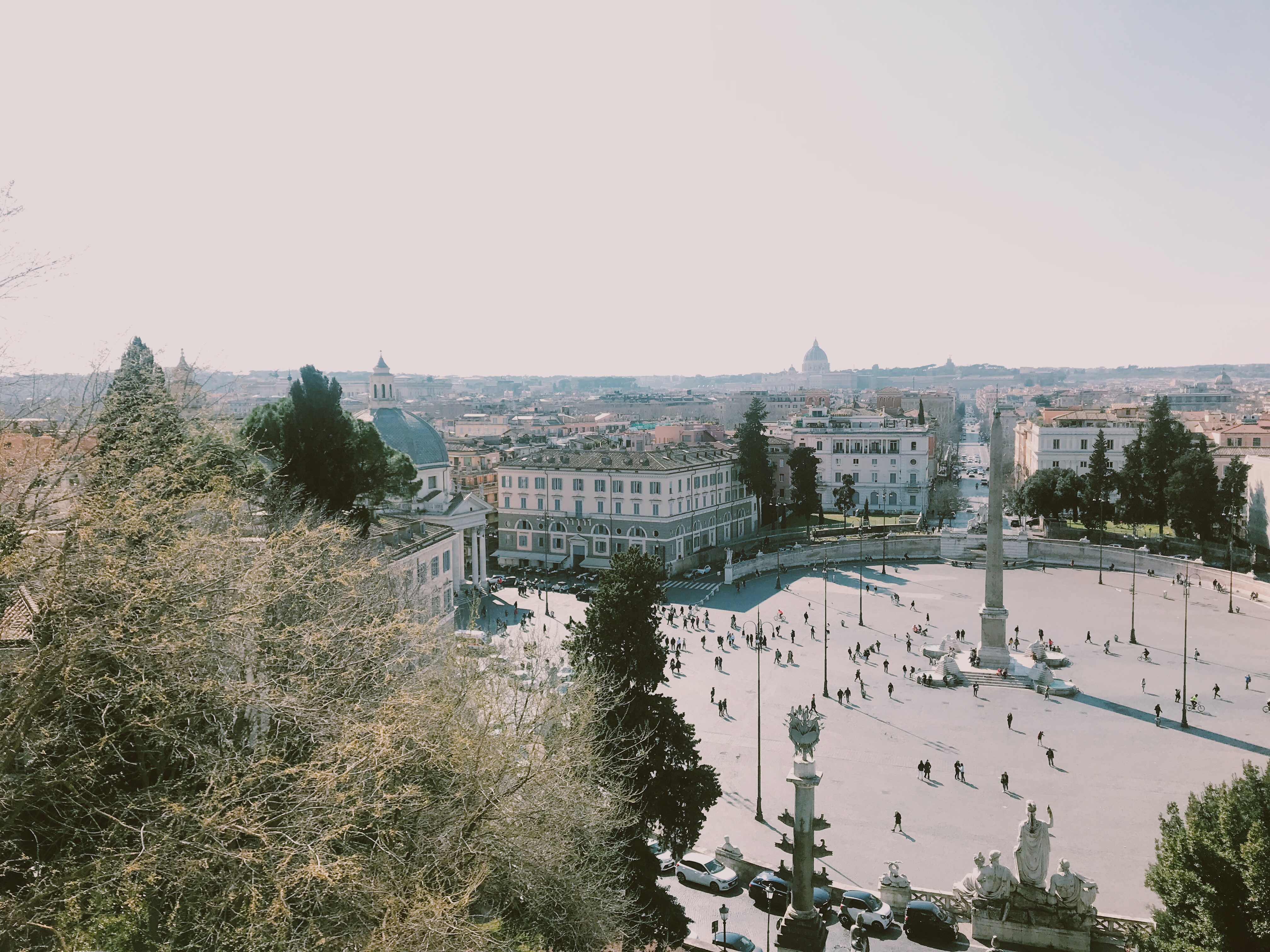 - Piazza del Popolo e Piazza San Pietro: dal Pincio, sopravvissuti alle follie del risciò, scendiamo verso Piazza del Popolo e poi proseguiamo verso Prati dove facciamo una tappa per un gelato alla Gelateria La Romana in Via Cola di Rienzo. Da qui (saltiamo la visita a Castel Sant’Angelo per questioni di tempo) arriviamo a Piazza san Pietro. Non visitiamo l’interno della basilica perché sono passate le 18:00 e ormai è chiusa, ma mostriamo a Orlando il punto del centro del colonnato e ammiriamo l’immensa piazza illuminata. Concludiamo con un aperitivo al Cambio a Trastevere.